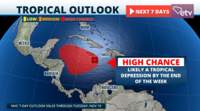 High chance for tropical storm formation over the Western Caribbean